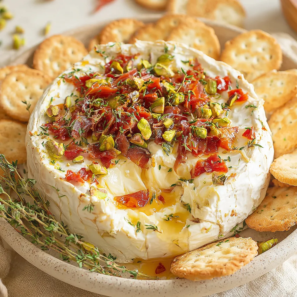 Creamy Brie Cheese Dip with Crispy Prosciutto, Hot Honey & Pistachios