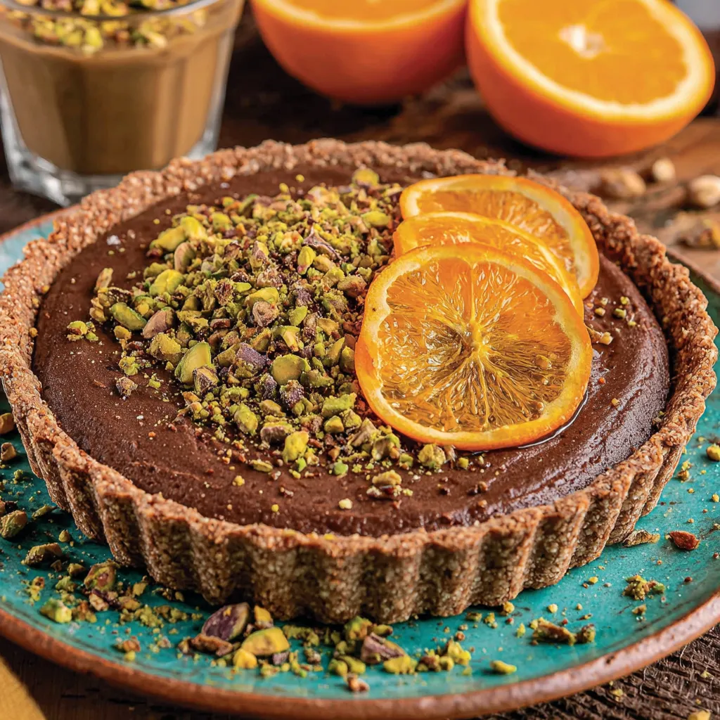Chocolate Tart with Orange Marmalade and Pistachios