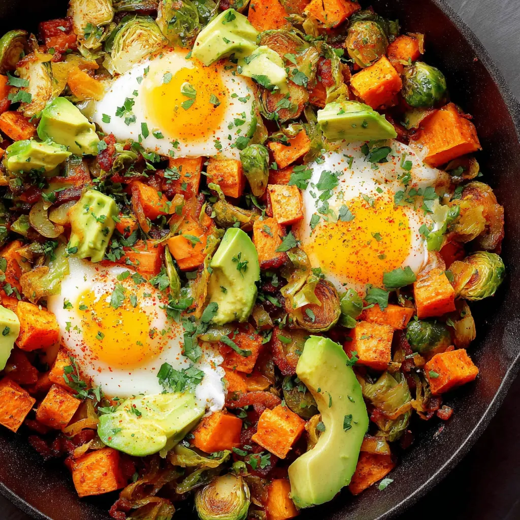 Quick Sweet Potato Brussels Sprout Hash
