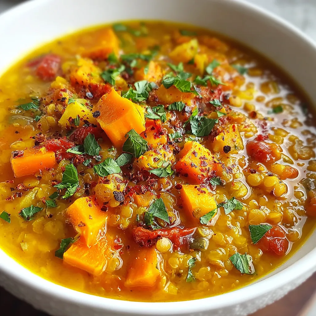 Red Lentil Soup with Veggies and Herbs